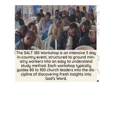 The Bridge Workshop is an intensive 3 to 5 day in-county event, structured to ground ministry workers in an easy-to-understand study/teaching method. Each workshop specifically guides them into the discipline of discovering fresh insights in God's Word.